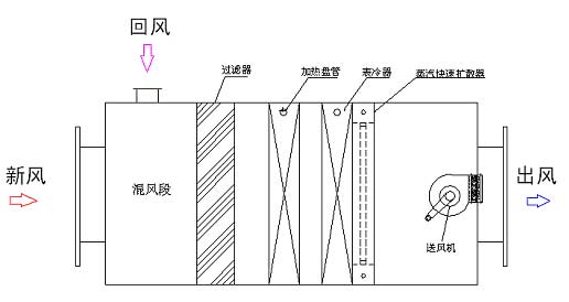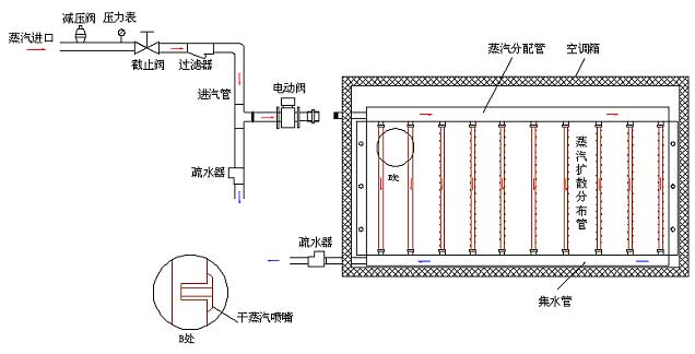 蒸汽快速扩散器在空调箱内的安装位置示意图: