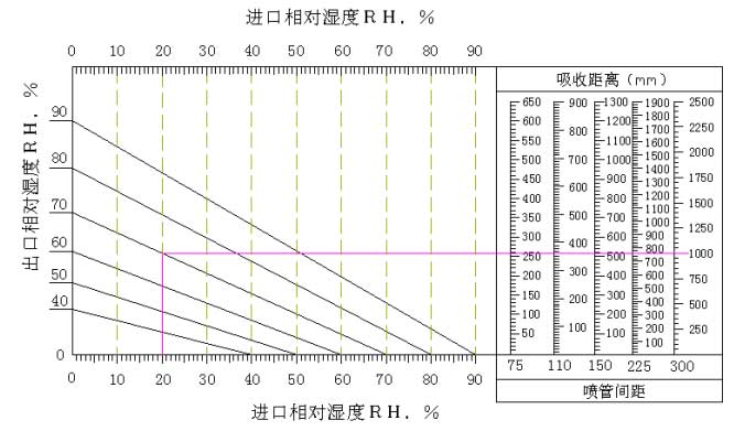 表三:蒸汽扩散分布管间距与吸收距离: